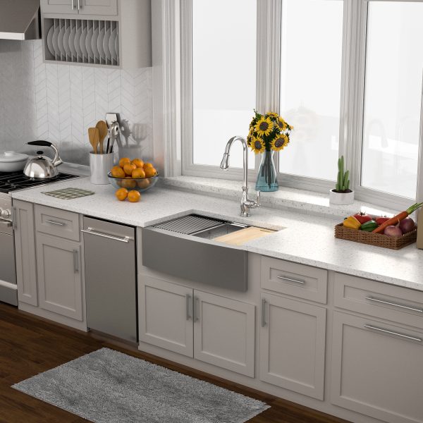 Upgrade your kitchen with the HEVEAY DUTY 30 x 21 Inch Single Bowl Kitchen Apron Sink. This farmhouse sink combines functionality, durability, and timeless design to elevate your kitchen space. Crafted from T304 18 Gauge Thick stainless steel, this sink is built to withstand daily use without scratching or denting. The brushed and rust-resistant finish ensures long-lasting beauty and protection against dulling and rusting.