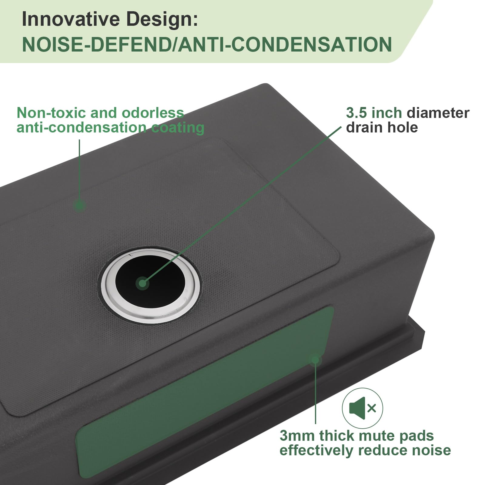 - This Large Single Bowl Deep Sink with heavy duty sound guard and softer rubber noise reduction padding to absorb vibration and minimize noise when the sink is in use.